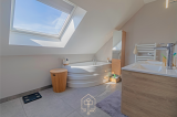 - Une salle de bains spacieuse avec baignoire et douche.